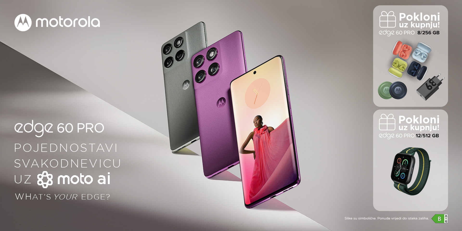 Kupi Motorolu Edge 60 Pro, 8/256 GB model u bilo kojoj boji, i na poklon dobivaš sljedeće: