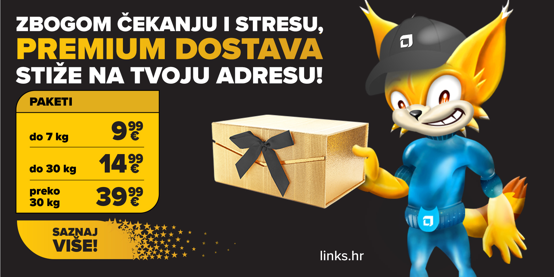 Isprobaj Premium dostavno iskustvo po akcijskoj cijeni i uživaj u brzini koju zaslužuješ!